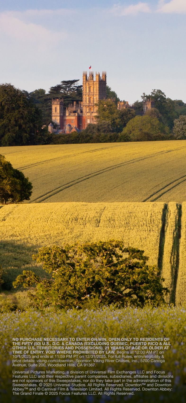 NO PURCHASE NECESSARY TO ENTER OR WIN. OPEN ONLY TO RESIDENTS OF THE FIFTY (50) U.S., D.C. & CANADA (EXCLUDING QUEBEC, PUERTO RICO & ALL OTHER U.S. TERRITORIES AND POSSESIONS), 21 YEARS OF AGE OR OLDER AT TIME OF ENTRY. VOID WHERE PROHIBITED BY LAW. Begins at 12:00 AM PT on 10/1/2025 and ends at 11:59 PM PT on 12/31/2025. For full Rules, entry/eligibility & prize details: viking.com/downton