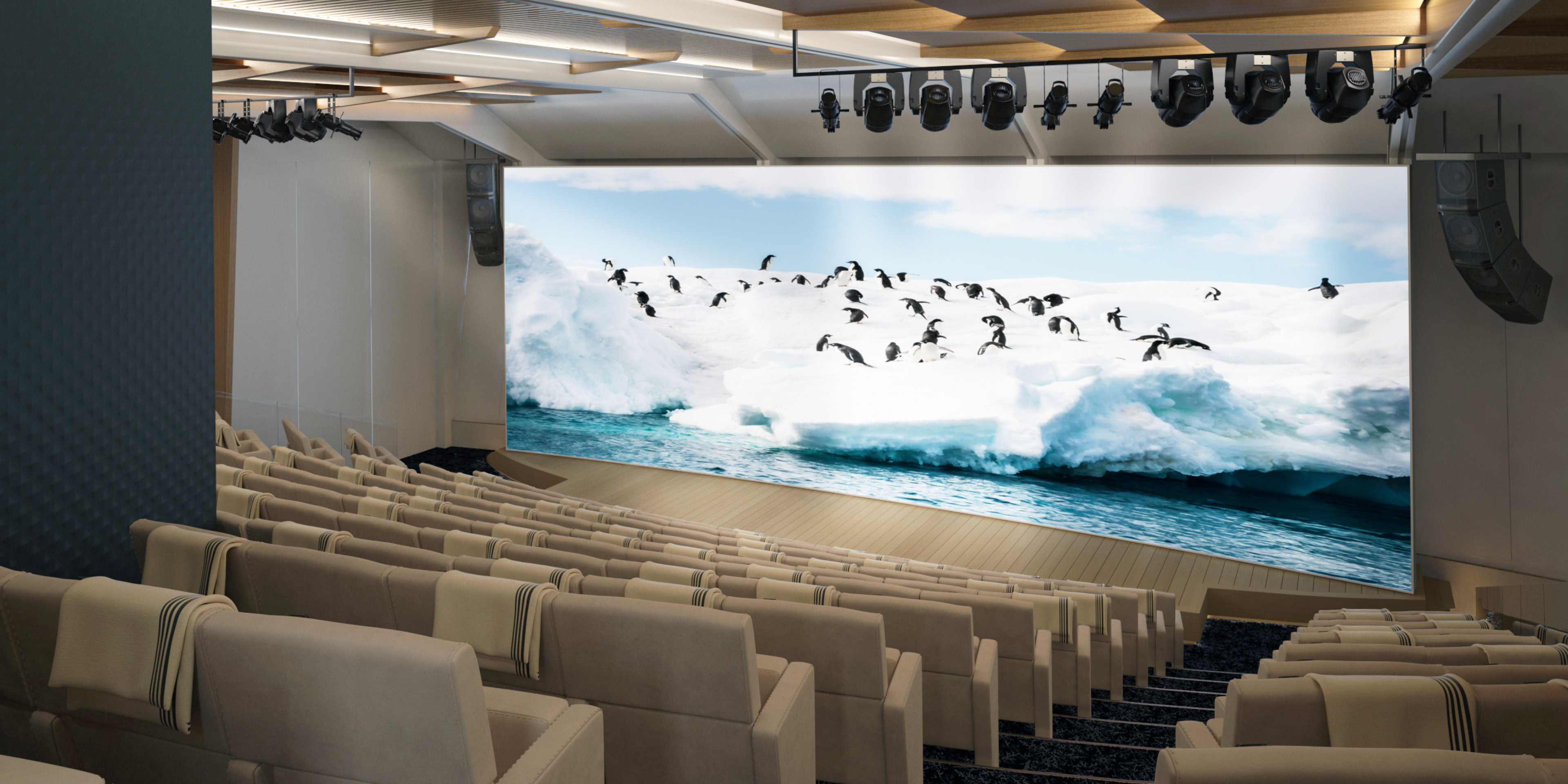 Sit back and relax in The Aula, your ship’s dynamic venue for lectures and entertainment. Immerse yourself in an informative documentary about the wildlife of the Falkland Islands as you cruise.