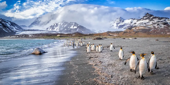 South Georgia is untamed beauty, with its rugged landscapes, mountainous hillsides and spectacular glaciers. It was founded by Captain James Cook in 1775 and has featured on many explorers’ maps since. Sir Ernest Shackleton first traversed these waters in 1916, returning in 1921 in an attempt to map the coastline of the Antarctic. To this day, South Georgia remains one of the least visited places on earth. While it remains permanently uninhabited by humans, it is home to an abundance of wildlife, including king penguins, albatross, as well as elephant and fur seals.