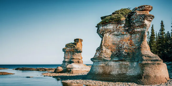 Havre-Saint-Pierre is located on the northern shore of the Gulf of St. Lawrence, north of the Anticosti Island. Settled by fishermen from the Magdalen Islands in 1857, residents refer to themselves as Cayens and proudly celebrate their Acadian heritage. Historically focused on fishing and lumber, today the village serves as a transit port for ore brought from the mines of Lac Allard. Nestled among the stunning landscapes of the Canadian Shield, this region is a renowned for its diverse flora and fauna, as well as its mysterious, weather-eroded “monoliths.”