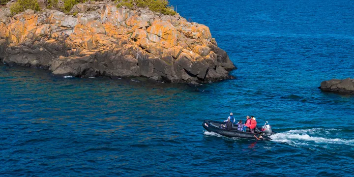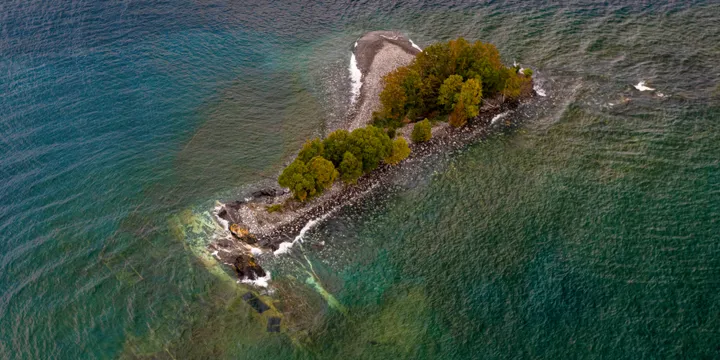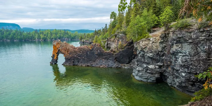 Silver Islet sits on the southern edge of the Sibley Peninsula at the mouth of Thunder Bay. Nearby Sleeping Giant Provincial Park attracts outdoor enthusiasts year-round with its diverse wildlife and many miles of hiking trails that lead to spectacular views of the Canadian Shield landscape. Less than a mile from its shores are the remnants of an abandoned silver mine. Located 1,200 feet below Lake Superior, this unique underwater mine was the world’s largest and most valuable silver mine, producing the modern-day equivalent of $78 million before flooding in 1884.