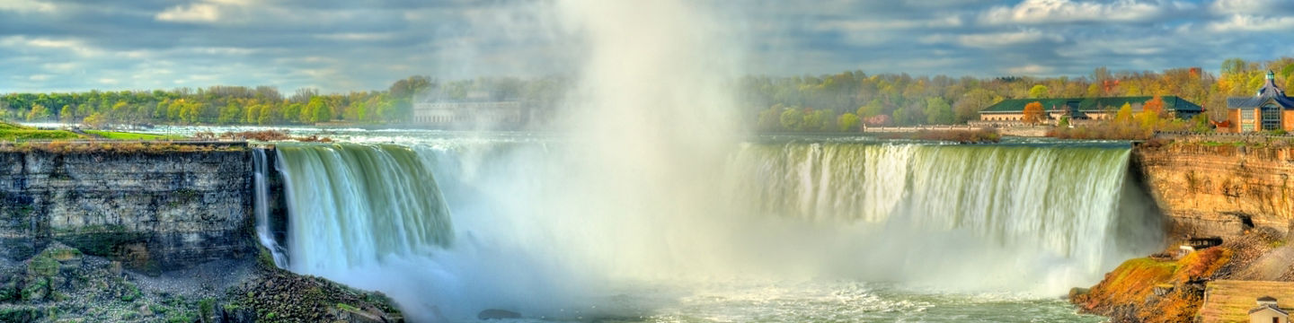 - Niagara Falls is a thundering cataract located on the Niagara River, which forms a natural border between the United States and Canada. There are, in fact, three separate waterfalls: two that sit in the US—the American Falls and Bridal Veil Falls—and the Horseshoe Falls located in Canada.