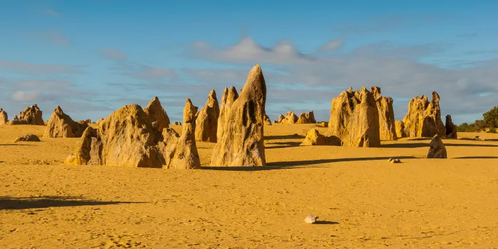 See the stark panorama of Western Australia and Nambung National Park’s natural phenomena known as “the Pinnacles.”