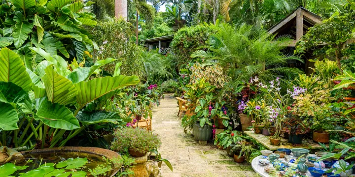 Admire flowering trees and tropical plant species during a visit to the Andromeda Botanic Gardens.
