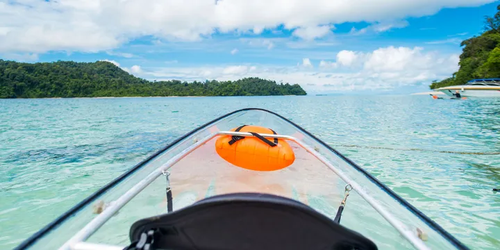 Paddle along the west coast of Barbados in a clear kayak and glimpse the colorful underwater world below.