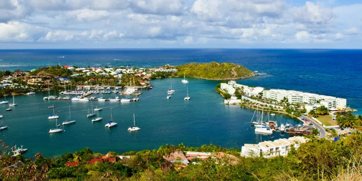 St. Martin is a fascinating mix of France and Holland and the island has been shared by the two nations since 1648. The early economy relied on cotton, tobacco, salt and sugar. A large salt pond remains, once harvested by the Dutch East India Company for trade. Today, the Dutch side of the island, anchored by its capital, Philipsburg, is dotted with resorts and casinos. The renowned Rotary Lookout Point offers stunning panoramic views of the Simpson Bay Lagoon and surrounding islands. Further north, the 1.5-mile swath of white sand at Orient Beach is ideal for sunbathing.