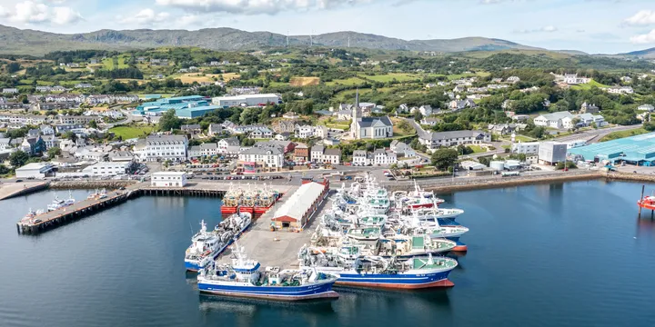 Killybegs is scenically set at the foot of a harbor full of boats and trawlers. Its most notable place in history is as the final port of call for La Girona, a ship of the Spanish Armada fighting in the war against England, before she was lost off the nearby Antrim coast. Beyond the massive hauls of fish brought in and imported daily, Killybegs is further renowned for the artful Donegal Carpets that were once woven here on the world’s largest carpet loom. These magnificent works—created in a Turkish hand-knotted style—were created for notable buildings the world over.