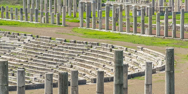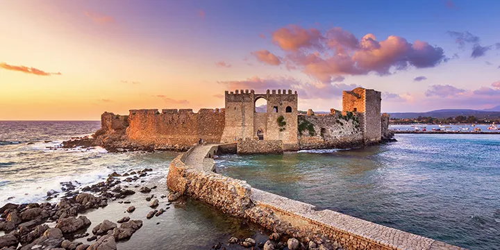 Kalamáta lies on the southern coast of Greece’s mainland and is the perfect base to see some of the country’s most impressive ancient sites. The Palace of Nestor is one of the best-preserved structures of the Mycenaean civilization, while the ancient capital of Messene showcases the ambitious planning of urban architecture of its time, with its impressive fortified city walls, amphitheater and temple dedicated Asklepios, the Greek god of medicine. The Byzantine City of Mystras was second only to Constantinople at the height of its power and is a UNESCO World Heritage Site.