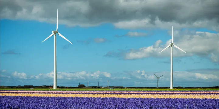 Journey through the dreamy Dutch countryside to a tulip farm and witness how windmill technology has changed.