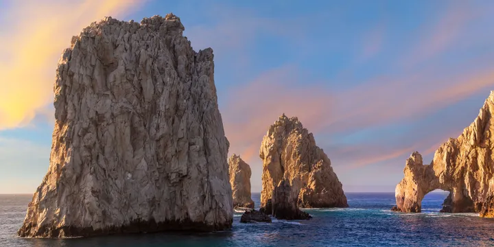 Located at the tip of the 775-mile Baja Peninsula, where the Pacific Ocean meets the Gulf of California, Cabo—as it is commonly known—is one of Mexico’s top destinations for its long beaches, resorts, scuba diving and picturesque coast. Renowned for the spectacular rock formations that line its shores, this bustling playground boasts one of the region’s most scenic harbors. The sleepier side of this resort town lies in San José del Cabo. Its charming pink church, inviting town square and low adobe homes evoke an old colonial flair.