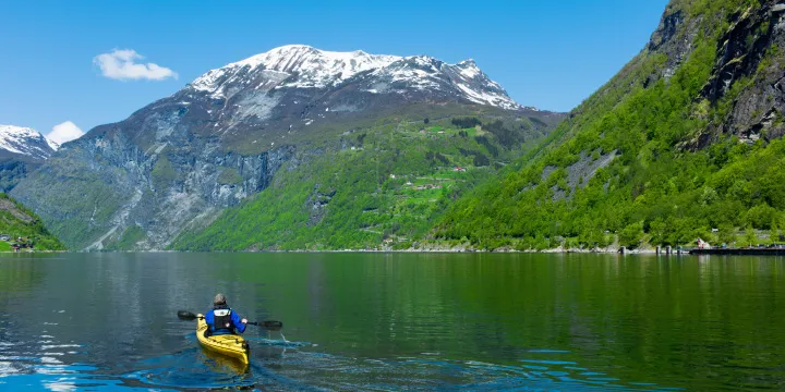 Geiranger is the gateway to some of coastal Norway’s most magnificent natural treasures. Nearby, the Seven Sisters Waterfall tumbles 1,000 feet into the fjord’s water, while directly across the fjord, the Suitor Waterfall also plunges down a steep face. The overlook known as Eagle’s Bend towers 2,000 feet above the village, accessed via a winding mountain road with 11 hairpin turns. The Norwegian Fjord Center puts all this natural splendor into perspective with fascinating exhibits.