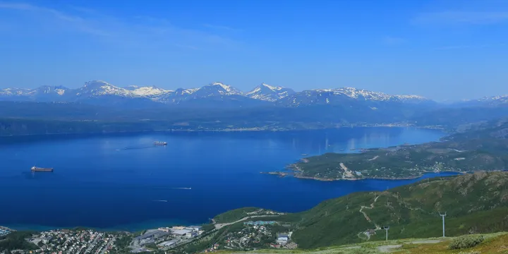 Narvik is situated on the innermost shores of the Ofotfjorden, within the Arctic Circle. The small town enjoys a dramatic backdrop, encircled by mountains and a glacier that spills right to the water’s edge. The town served as a port city for the early Viking settlers. Much later, the discovery of iron ore in the nearby Swedish town of Kiruna forever shaped Narvik. Kiruna needed a year-round ice-free port from which to ship its new discovery, and so a rail link was built directly to the water. Still today, Narvik is a major exporter.