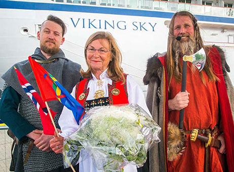 After arriving today in Tromsø, Viking Sky was positioned in the harbor adjacent to a concert stage constructed specifically for the celebration. Viking guests and residents of Tromsø were treated to a public concert, with performances from a variety of Norwegian musicians—including Arctic Philharmonic, Lisa Stokke, Violet Road, Sara Marielle Gaup Beaska and Jørn Hoel. During Viking Sky’s christening ceremony, Marit Barstad, sister of Viking Chairman Torstein Hagen, served as ceremonial godmother and offered a blessing of good fortune and safe sailing for Viking Sky—a naval tradition that dates back thousands of years.
