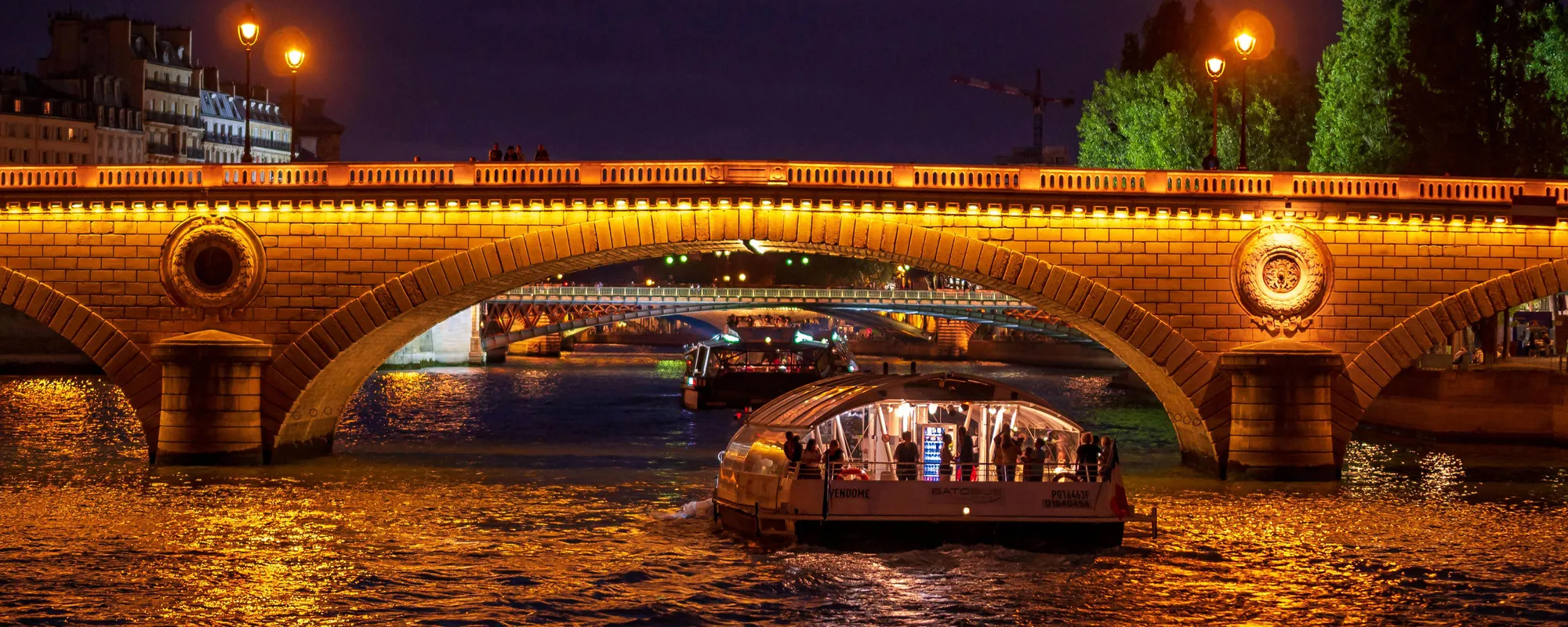 An impressive collection of 37 graceful bridges and footbridges line the Seine, connecting the Left Bank to the Right Bank. Enjoy a special opportunity to view the city’s bridges—from Le Pont Alexandre-III to the Pont-Neuf—illuminated after dark when you glide along on an open air vessel during our “Paris Cruise By Night” excursion.